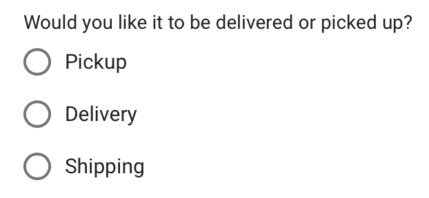 5. Choose a fulfillment method (pickup, delivery, shipping)